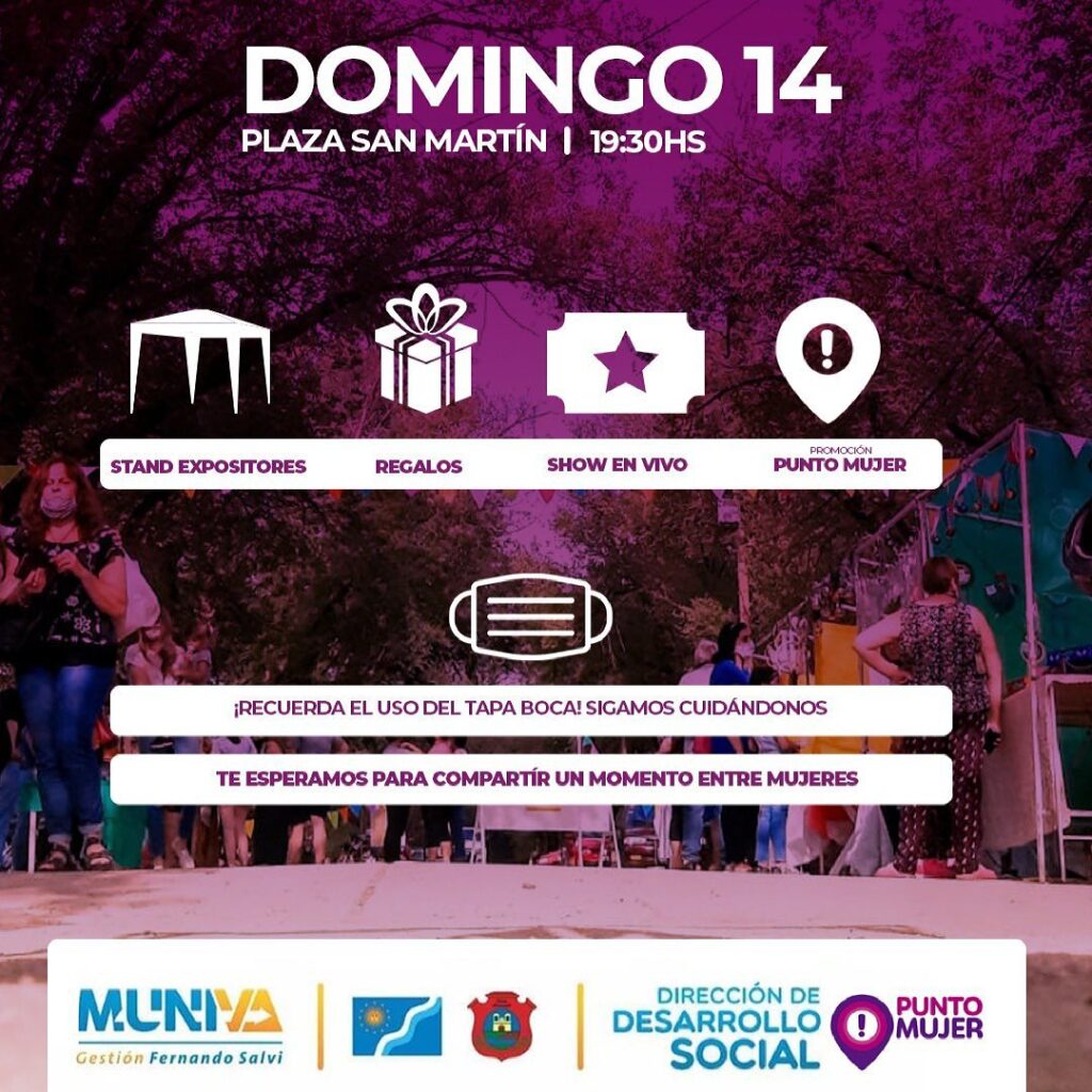 El domingo 14 de marzo, desde las 19.30, habrá stands expositores, regalos y show en vivo, en un encuentro organizado por Punto Mujer y la Dirección de Desarrollo Social.