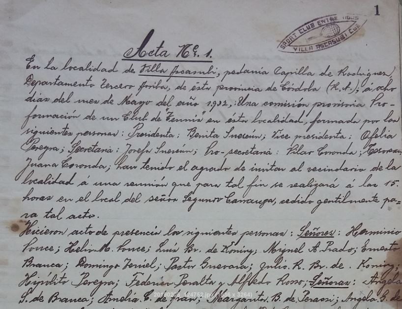 Para la creación del club, se había conformado una comisión “pro formación de un club de tennis”, la cual se encargó de convocar a los vecinos de la localidad a la reunión del 8 de mayo en el salón de reuniones de Segundo Carranza.
