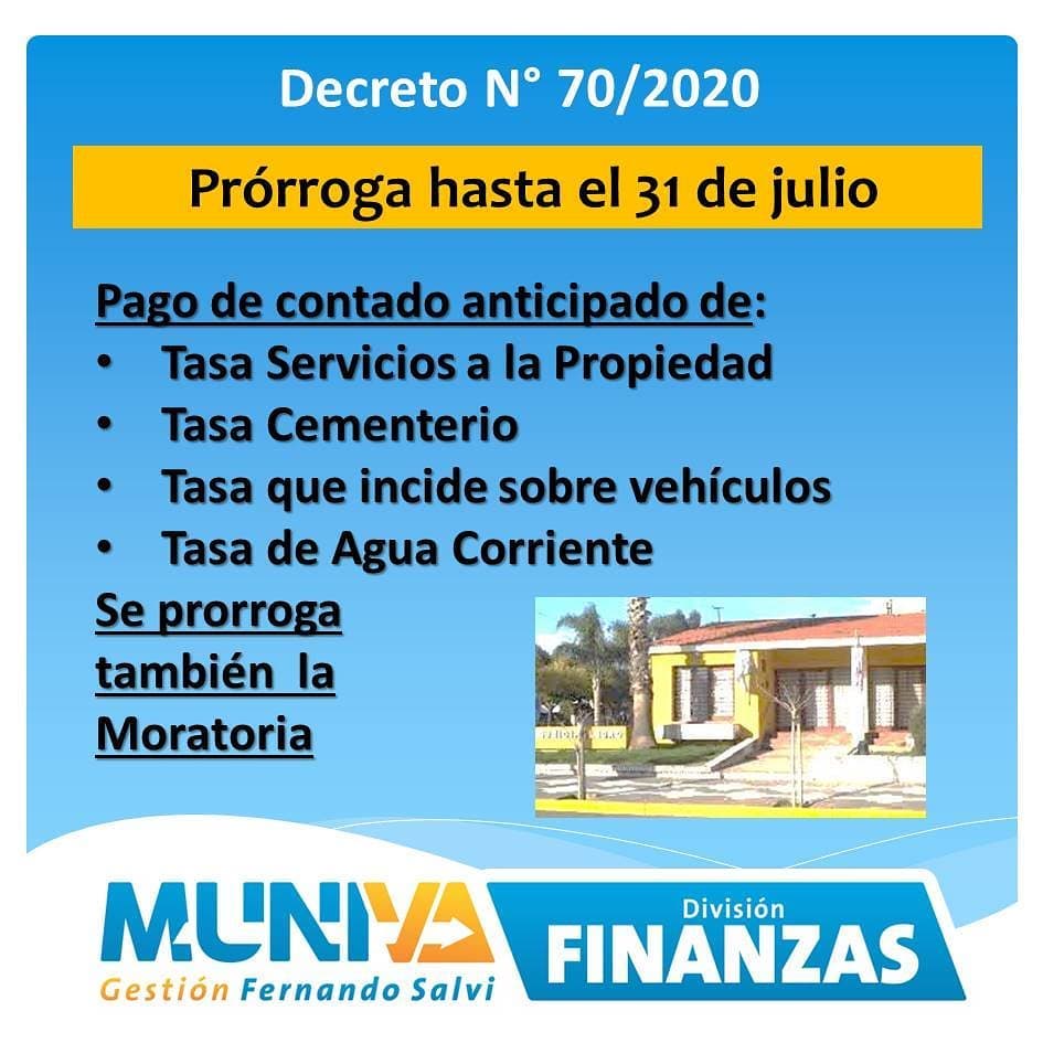 La Municipalidad de Villa Ascasubi informa prórrogas hasta el 31 de julio de 2020 para pago anticipado de tasas y pago de moratoria.